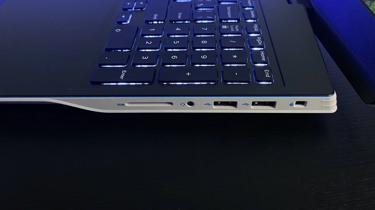 На правой стороне разместились кардридер, комбинированный аудиоразъём, два USB 2.0 Type-A и слот Kensington lock.
