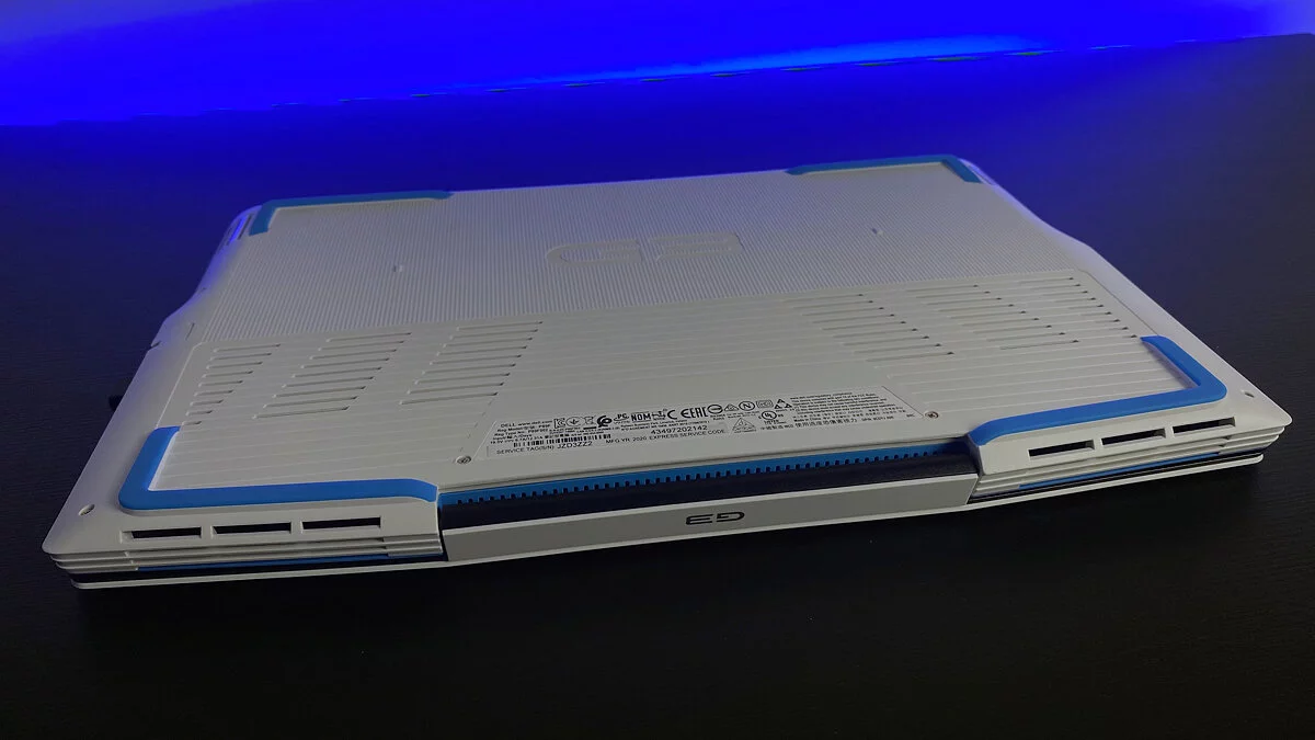Выполнен Dell G3 из крепкого пластика со стильными голубыми вставками. Несколько инопланетный дизайн подчеркивает белая расцветка Alpine White. Также ноутбук продается в классическом чёрном цвете Eclipse Black.