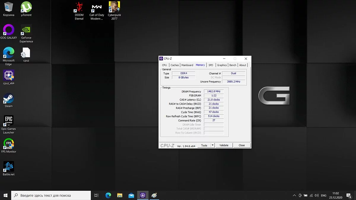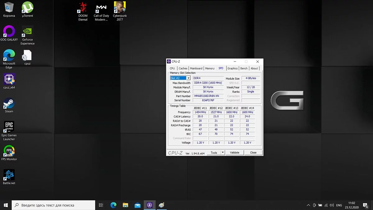 - Оперативная память: SK Hynix 8 ГБ памяти DDR4, 2933 МГц