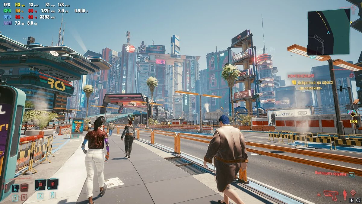 Для начала мы схватились за самое жаркое — Cyberpunk 2077. Отметим, что даже с патчем 1.05 новая игра польских разработчиков всё ещё страдает от плохой оптимизации и багов. Поэтому полностью чистым этот тест назвать нельзя.