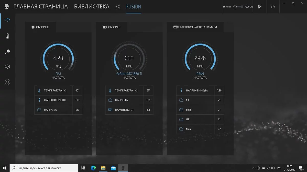 Производительность и охлаждение регулируются в программе Alienware Command Center. Все тесты мы проводили в режиме максимальной производительности, когда два кулера работают на высокой скорости. Вне его требовательные игры значительно нагревают ноутбук.