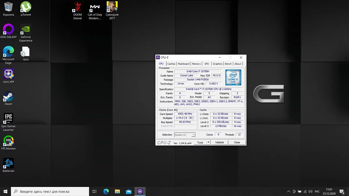 - Процессор: Шестиядерный процессор Intel® Core™ i7-10750H десятого поколения (кэш 12 Мбайт, до 5 ГГц)