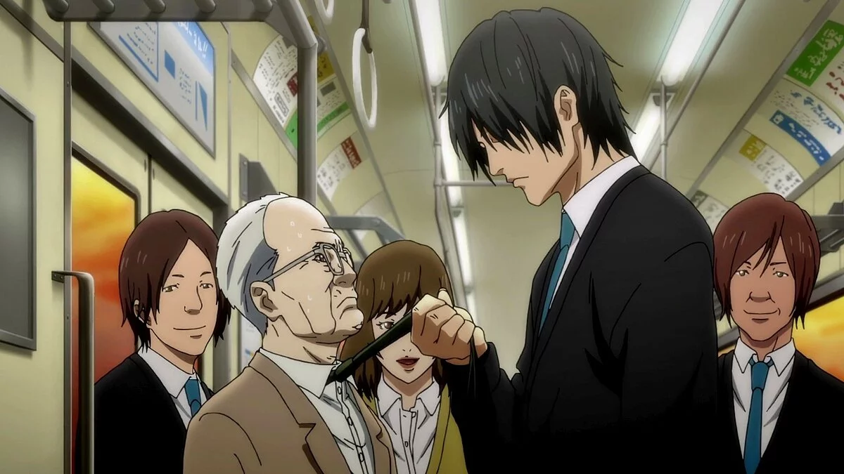 Конечно, это аниме не так популярно, как «Тетрадь смерти», но всё же заслуживает внимания. Главный герой «Инуясики» — пожилой офисный клерк, который целыми днями работает, но с трудом сводит концы с концами. Семья предпочитает его попросту не замечать, он не видит смысла ни в чём, да ещё и на медицинском осмотре врачи обнаружили у него рак. Однажды, будучи в отчаянии, он решает прогуляться и встречает молодого человека по имени Хиро. Вот только долгой беседы не получается, ведь на них падает… инопланетный корабль.