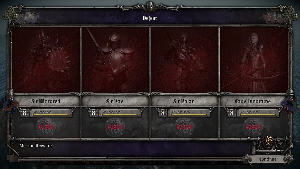 Ещё больнее становится от того, что персонажи — не случайно сгенерированные болваны, как в XCOM, а прописанные легендарные личности со своими характерами, отношением к жизни и уровнем преданности. Так, первым нашим сопартийцем станет достопочтенный сэр Кей, в прошлом рыцарь Круглого Стола, молочный брат Короля Артура и его сенешаль. Неприятно терять такого персонажа из-за нелепой ошибки. На глобальной карте есть пара построек, которые намекают, что потерянных бойцов, вероятно, можно будет воскрешать, но в бета-версии нет возможности их оценить.
