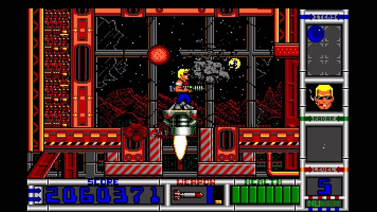 Дюк образца 1991 года был типичным героем боевика: молчаливым мускулистым мужиком с квадратной челюстью. Да и сам проект был вполне типичным платформером: бегай, прыгай, стреляй пришельцев, лопай куриные крылышки для восстановления здоровья. Однако делать это было достаточно весело, чтобы продажи, по заявления Скотта Миллера, составили в районе 60-70 тысяч копий. Несомненный успех по тем временам.