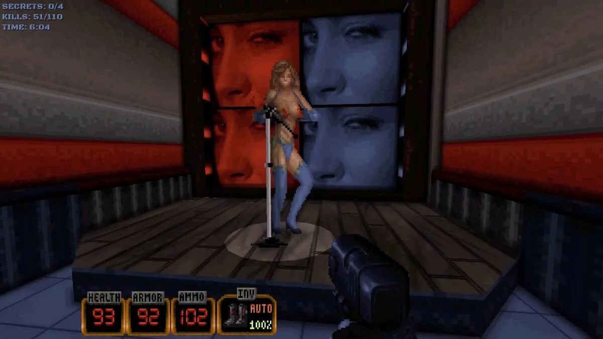 В баре не возбранялось поиграть в бильярд или посмотреть по телевизору сцену погони полиции за О. Джеем Симпсоном (O. J. Simpson), а в стрипклубе — оделить танцовщицу долларом или спеть в караоке Born to Be Wild. Именно интерактивность игрового мира, где для восстановления здоровья можно было отхлебнуть из питьевого фонтанчика, а главный герой (редкое по тем временам дело) отражался в зеркале, и была главной фишкой Duke Nukem 3D. Именно она позволила игре на равных конкурировать с Quake — очень технологичным и драйвовым, но далеко не таким обаятельным и местами слишком суровым шутером.
