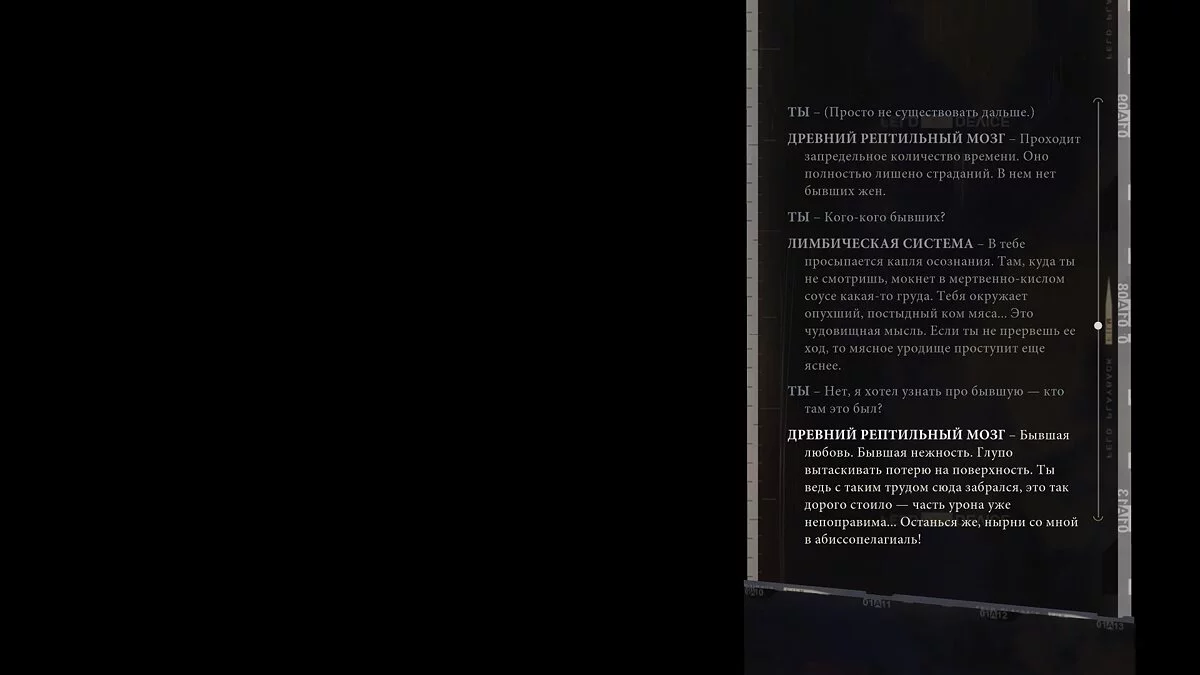 Впервые услышав о русской версии, я даже представить не мог, как локализаторы будут переводить и адаптировать текст Disco Elysium для нашего пользователя. Игра буквально пестрит идиомами, медицинскими терминами и устаревшими ругательствами, которые не то что переводить — даже понять сложно. Да, разработчики оригинала консультировали и помогали нашим переводчикам, делились диздоками и словарями. Но мне как человеку, который уже забыл, что такое игры с хорошим переводом, было реально интересно посмотреть на конечный результат. И… он хорош!