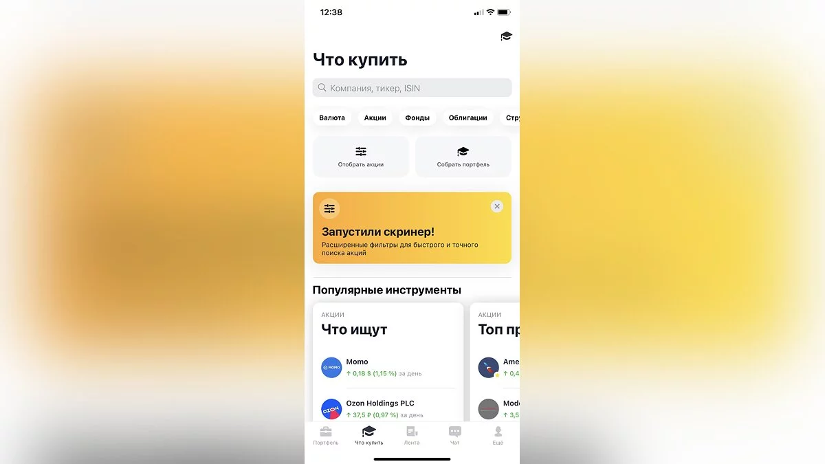 Для начала нужно скачать приложение для инвестиций: например вот это. Сегодня они есть у каждого крупного российского банка. Однако стоит обратить внимание, работает ли выбранный вами вариант с американской биржей — некоторые на ней не торгуются. Кроме того, банковские приложения для инвестиций требуют, чтобы вы были клиентом выбранного банка и имели там счёт.