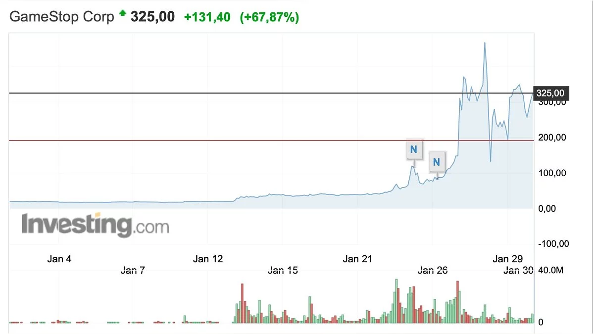 Ребятам с Reddit не понравилось, как толстосумы наживаются на загибающемся бизнесе. Обсуждение этого феномена длилось в сообществе весь 2020 год, и в результате WallStreetBets решили начать скупать акции GameStop, что, по прогнозам, должно было повысить их цену. Прогнозы оказались верны.