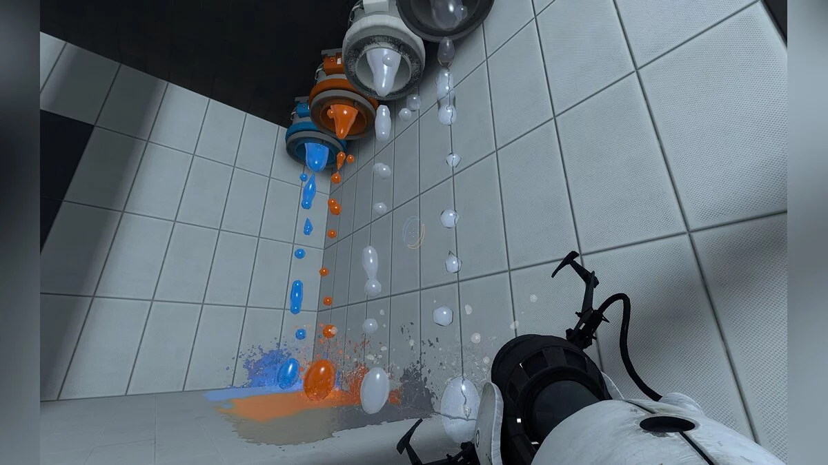 Геймдизайнер первой части Кимберли Свифт (Kimberly Swift) покинула Valve, и компании требовались новые люди со свежими идеями. Излюбленное занятие Гейба Ньюэлла — мониторить пользовательские разработки — в очередной раз принесло свои плоды. Valve пригласила группу студентов, создавших в 2007 году игру Tag: The Power of Paint. В этом проекте у главного героя была пушка, которая стреляла тремя видами красок. Каждый цвет, попадая на поверхность, придавал ей различные свойства. Так игрок мог ускоряться, получал возможность ходить по стенам и учился прыгать выше обычного. Новые сотрудники хотели, чтобы в Portal 2 работала реалистичная физика гелевой жидкости, которая будет иметь те же физические особенности, что и краска в Tag. Программистам пришлось усердно трудиться над новым функционалом движка, чтобы воплотить всё задуманное в жизнь.