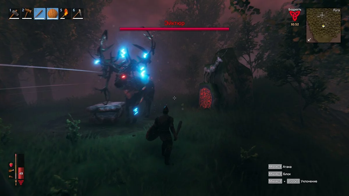 Valheim, как и любой survival, построена на гринде и крафте. Викингу придётся рубить деревья, искать камни, добывать мясо и кожу, собирать ягоды и грибы — всё затем, чтобы отстроить дом получше, обеспечить себе сытую жизнь и создать по-настоящему смертоносную экипировку. Гриндить в Valheim действительно интересно, потому как необходимые ресурсы постоянно меняются, а новые всегда требуют свежего подхода. Да и вместо того, чтобы бегать за кабанами с целью собрать обрывки кожи, можно приручить парочку и создать семью хряков, которая обеспечит потомство, а значит и необходимые ресурсы. А уж если наш викинг выживает не в одиночку, а в кооперативе, то любое дело станет многократно интереснее.