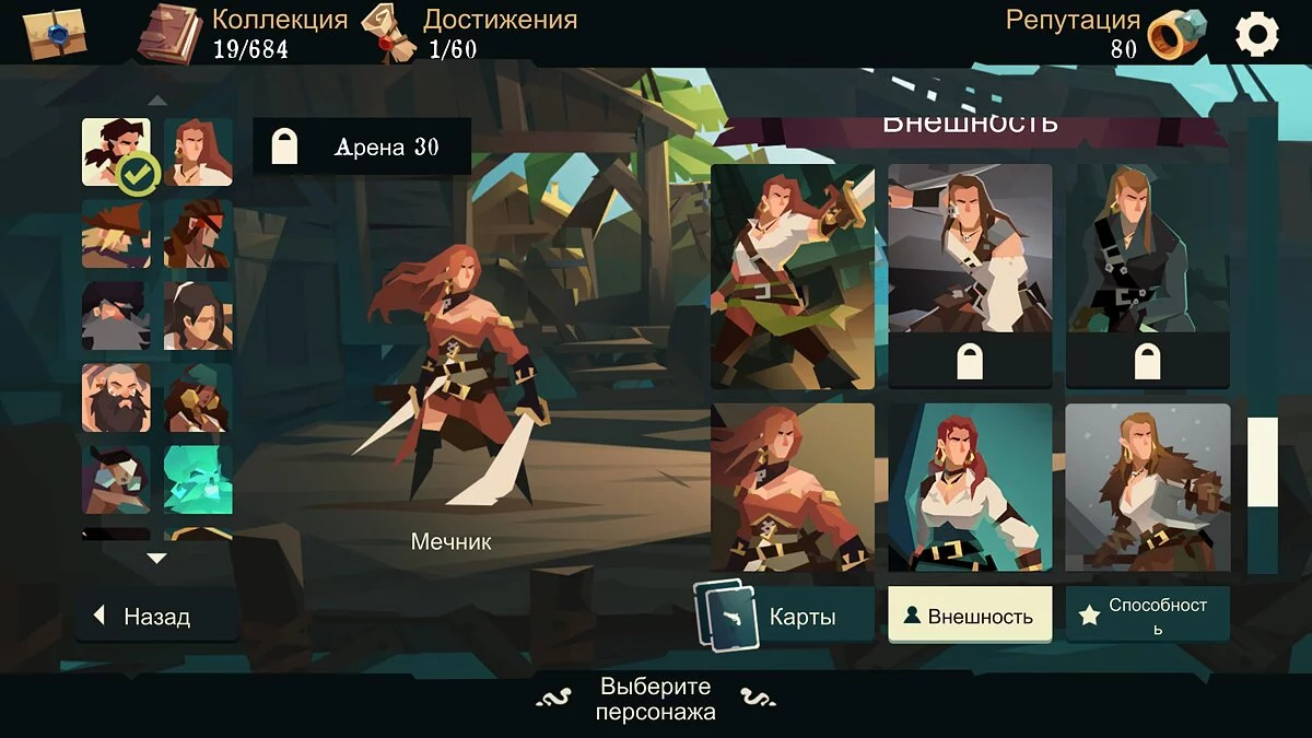 Для приобщения к жанру можно навскидку назвать несколько хитов. Хороши такие вещи, как Slay the Spire, Deck of Ashes, Monster Train. Новичкам мы рекомендуем попробовать себя в роли пирата, игра Pirates Outlaws максимально дружелюбна в освоении. Короткое и понятное обучение, жизнерадостно оформленная колода и арены, хорошая музыка и пиратский колорит — всё в лучшем виде. Здесь выпадают такие ценные карты, как «Опьянение», улучшающие критический урон, но ухудшающие защиту, на островах ждут проклятые клады, а команда поднимает боевой дух азартными играми — атмосфера выдержана в нужном ключе. К тому же, в Pirates Outlaws взят верный курс на RPG — нас ждут необязательные авантюры, рост репутации (читай — набор опыта), охота за ценным лутом и так далее.