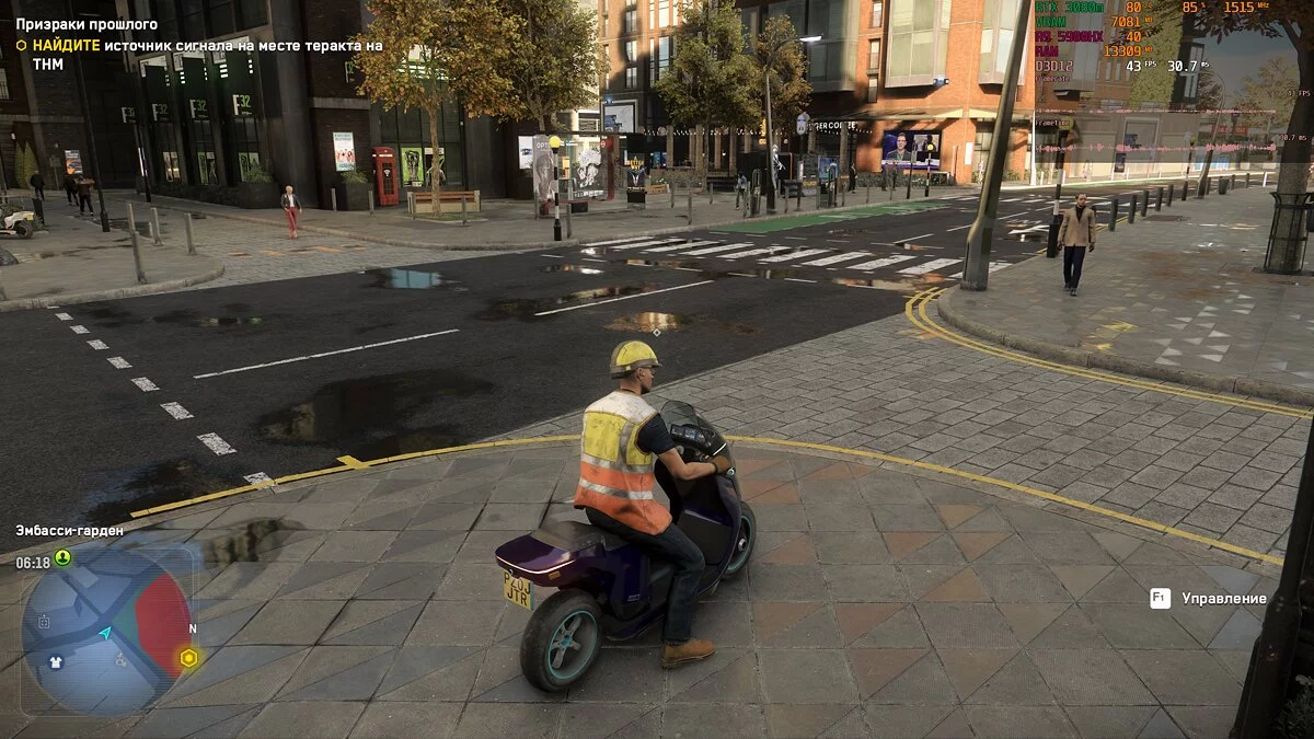 При таком пресете игра выдает от 30 до 40 кадров как в тяжелых условиях, в частности — при поездке по городу, так и при пешем геймплее. Если перейти к разрешению 1440p, то FPS повышается до 50 с просадками до 45 при поездках на машине.