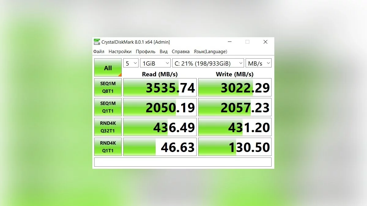 Производительность мы проверили в синтетических тестах Cinebench R23, CPU-Z и CrystalDiskMark. Тесты проводились в режиме «Эффективность».