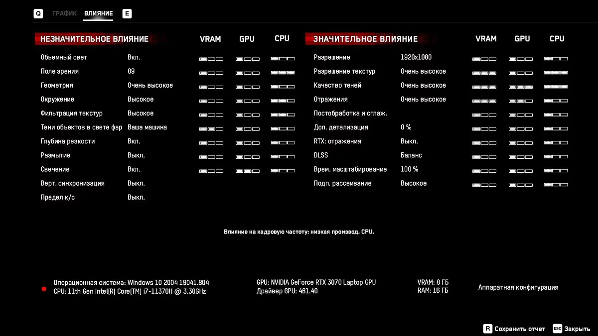 Теперь время оценить, как связка Intel Core i7-11370H и RTX 3070 ведёт себя в играх. Для этого мы отправились в Control, Watch Dogs: Legion и, конечно же, Cyberpunk 2077, куда без неё.