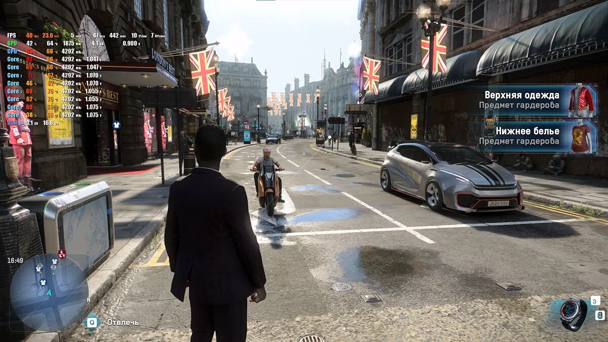 Если же включить трассировку лучей, то FPS падает до 30-40, особенно ощутимы провисания в больших локациях со множеством персонажей и предметов окружения.