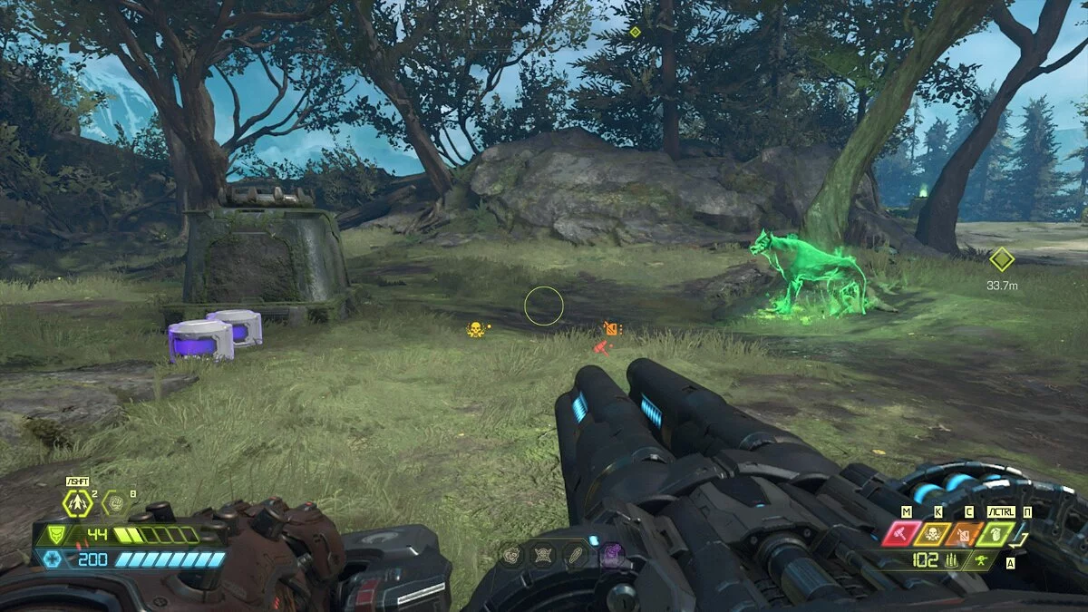 Каждый новый противник серьёзно влияет на ход сражения. Сначала DLC знакомит нас с тварями, которые в момент смерти издают усиливающий врагов крик. Следом на Думгая нападает бронированный Барон Ада, с которого сначала нужно сбить защиту, а затем поскорее прикончить: замешкаешься — и враг восстановит броню, обнулив все твои усилия. Каменных импов берут только выстрелы из дробовика, оснащённого особой модификацией. Рыщущие вешают на героя солидный дебафф, который можно снять, лишь убив врага в ближнем бою.