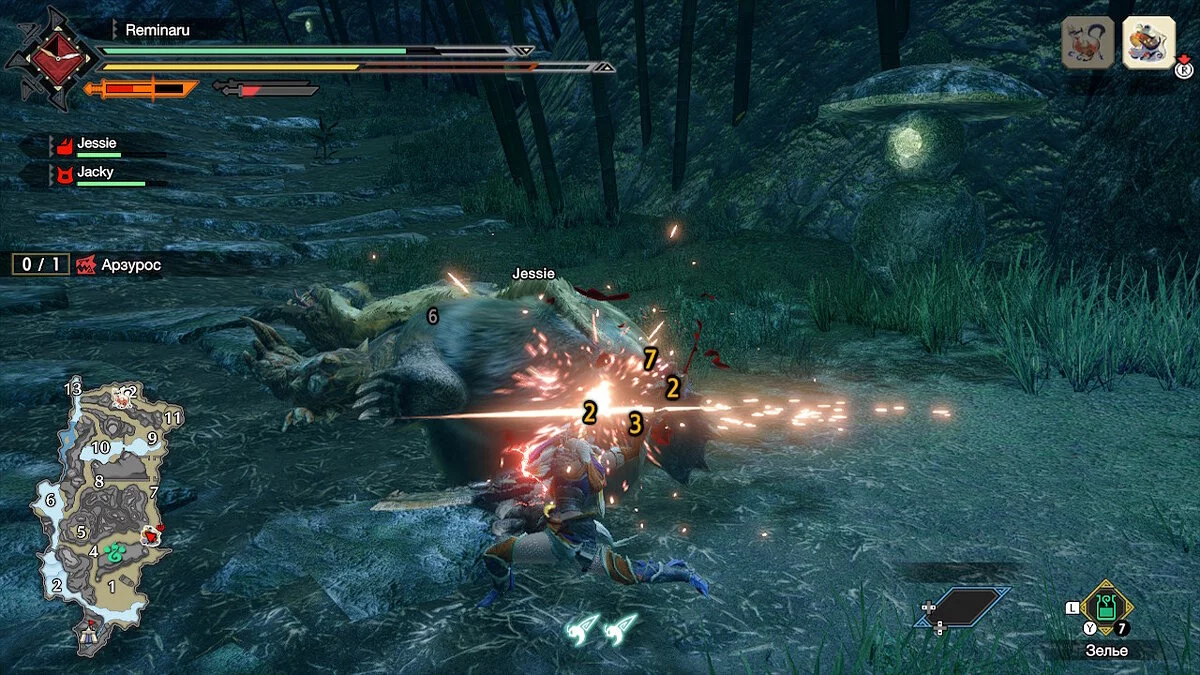 К сожалению, задания не могут похвастаться таким разнообразием. К тому же они почти не развивают историю. После довольно продолжительного обучения нас отправляют в отдельную локацию для выполнения заданий. Хватаем любое оружие, например двойные клинки, огромный двуручный меч или лук, и отправляемся на зачистку территории (есть смысл воспользоваться советами по выживанию в Monster Hunter: World — их суть почти не изменилась). Арсенал огромен, а доступ к нему открыт сразу же, поэтому каждый сможет найти подходящий клинок под свой стиль — достаточно немного поэкспериментировать.