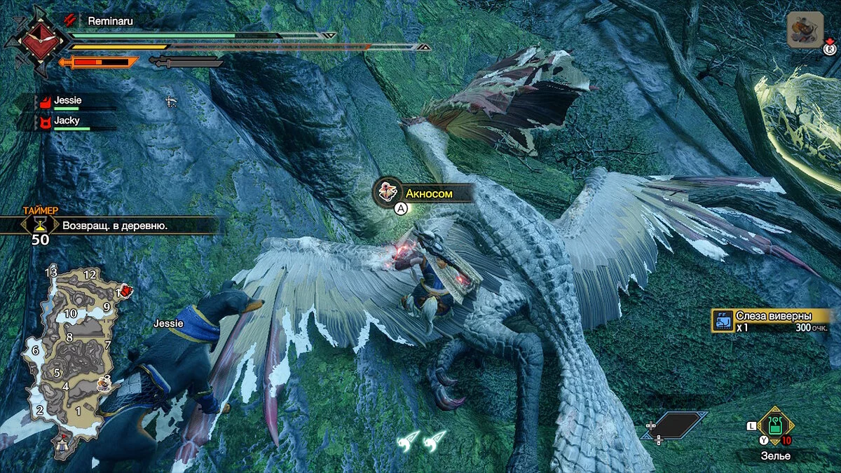В общем, подбежать и просто бить врага до потери пульса однозначно не получится — придётся изучить действия монстра и использовать разную тактику в сражениях. Ну а после победы останется собрать лут и автоматически вернуться в деревню за новыми поручениями.
