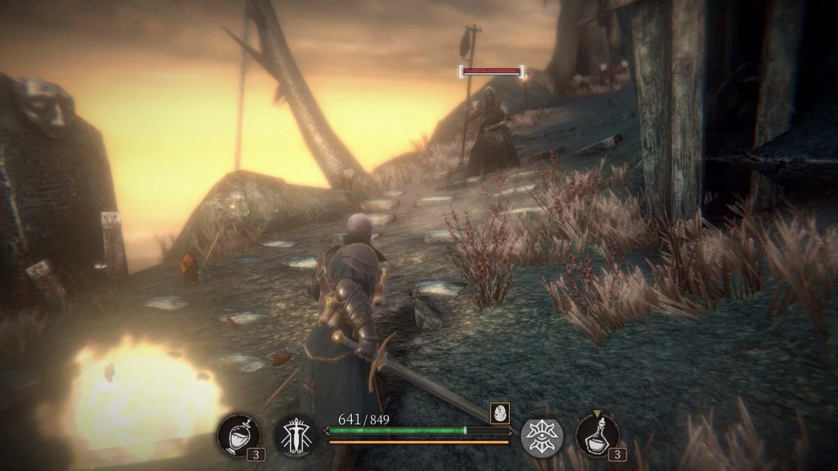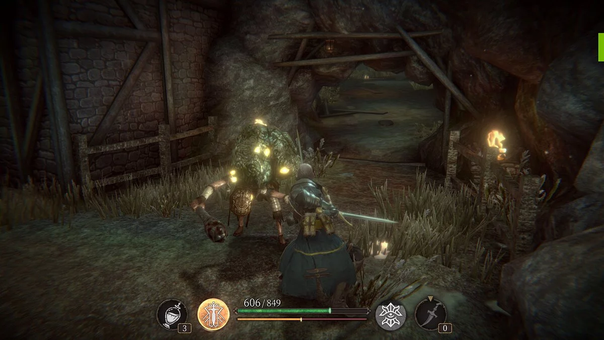 Тем более, что тут стало хуже почти всё. Игра, по ощущениям, замедлилась ещё сильнее: замахи теперь куда медленнее, а враги — ленивее. Искусственный интеллект поглупел, поэтому противники начинают спамить одинаковыми ударами, пока герой в раскорячку пытается упрыгать в сторону. Если с деревом прокачки всё понятно, то с инвентарём и артефактами возиться неприятно — но обязательно. Собирать предметы приходится ровно столько же, сколько сражаться с толпами мобов. Внутриигровое меню, которое отлично работает на смартфонах, на PC вызывает дикую боль. Оно интуитивно понятное, но абсолютно не подходит для больших экранов: всё такое крупное, будто игра идёт в разрешении 800х600. Интерфейс перенесли с мобильной платформы, и он загораживает нижнюю часть экрана, из-за чего следить за здоровьем и энергией становится сложнее, что вообще критично для Souls-like. Почему UI поленились переработать? Вопрос остаётся открытым.