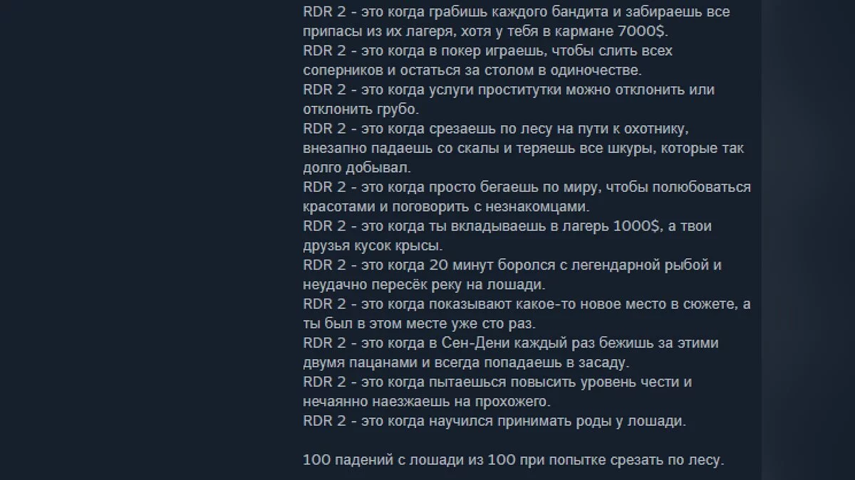 Подборка смешных отзывов на игры в Steam. Кратко и остроумно о Red Dead Redemption 2, Valheim, «Ведьмак 3: Дикая Охота», CS: GO, GTA 5 и других хитах