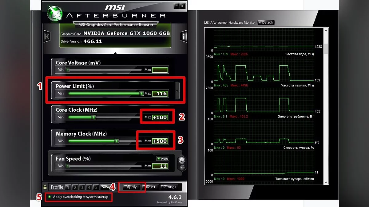 - Увеличьте Power Limit до максимального значения. Слишком много все равно поставить не получится.