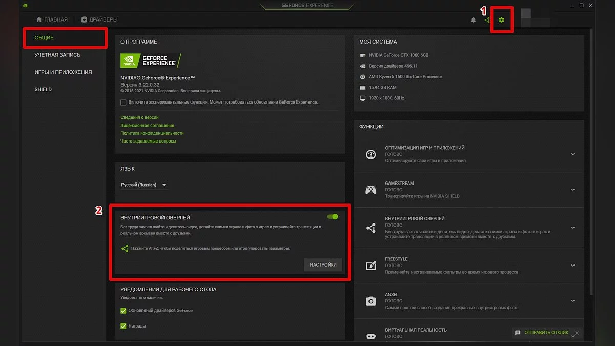 Также стоит кое-что сделать и в программе GeForce Experience, которая идет вместе с драйвером. Сначала вам будет нужно создать учетную запись, тогда можно будет пользоваться всеми функциями.