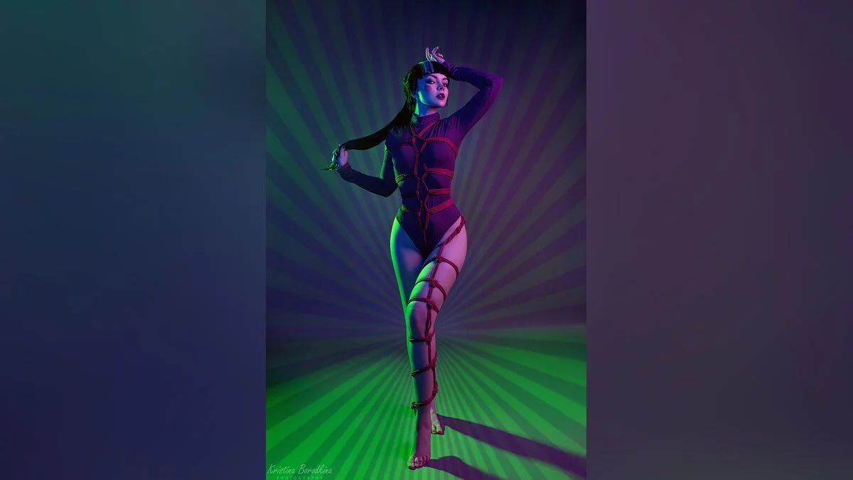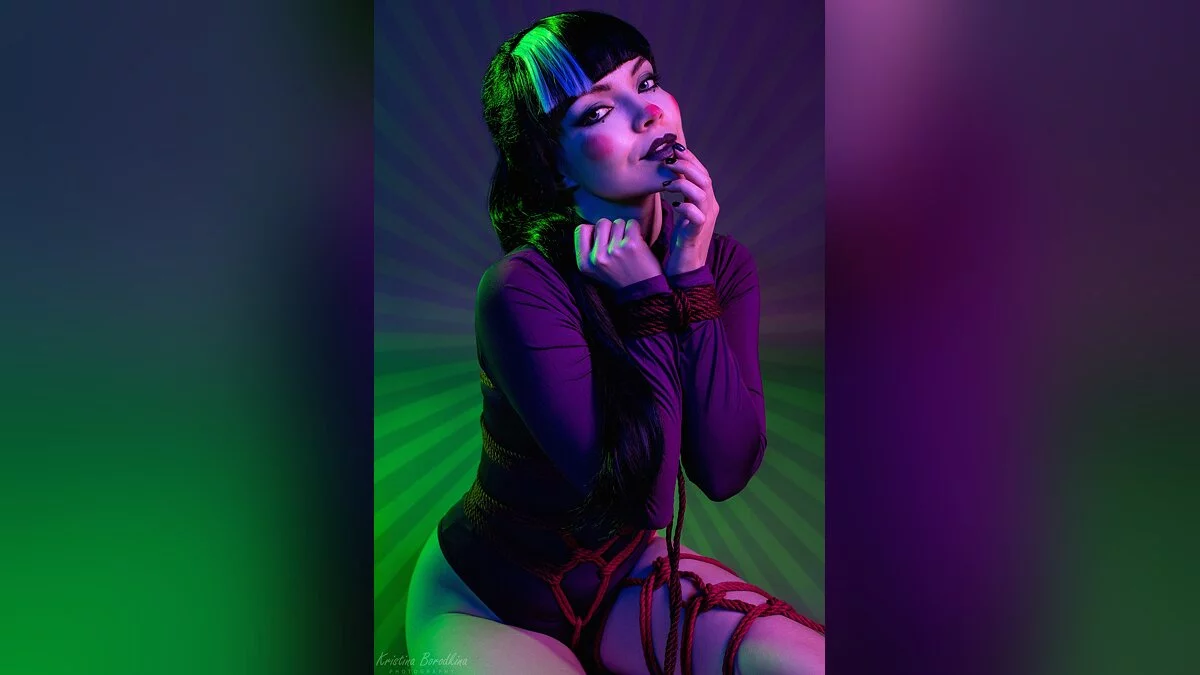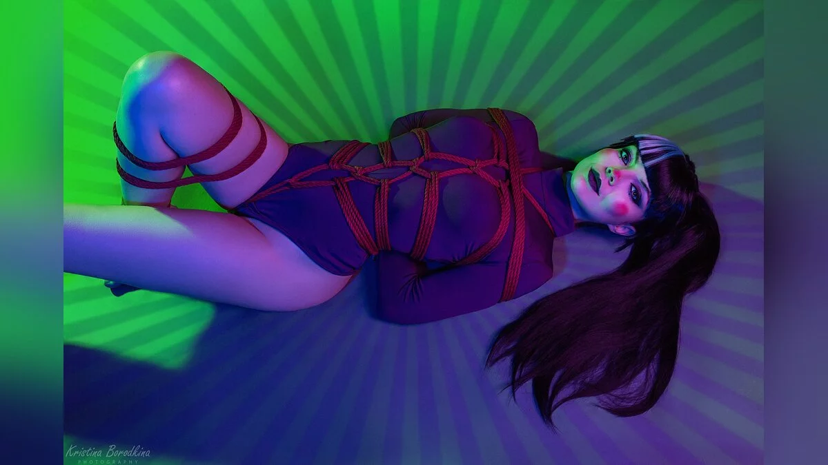 В статье про Микасу Аккерман мы обратили внимание на то, что косплеры в фотосетах часто прибегают к эстетике шибари. Ещё один пример — перед вами. Екатерина Семадени обратилась к образу Панчлайн, новой подружке Джокера из комиксов DC. Отметим, что девушка связана настолько красиво, что её не хочется развязывать.