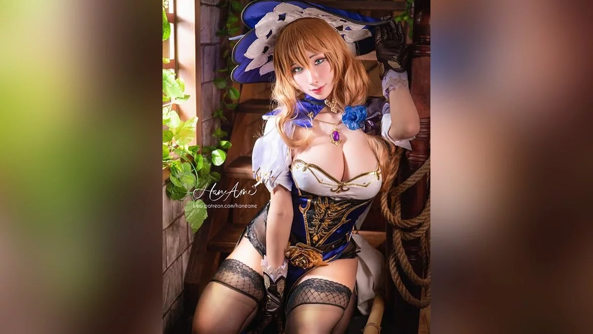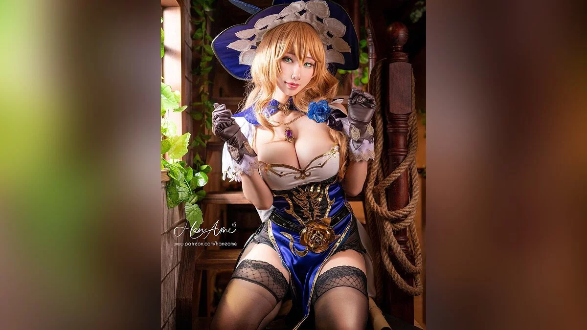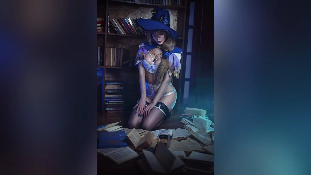 Ещё одна девушка-косплеер, которая решила раздеть чародейку из Genhin Impact. Обратите внимание: даже на самых откровенных кадрах Mikomin не снимает роскошную шляпу своей героини. В результате, на всех фотографиях она остаётся в образе Лизы.