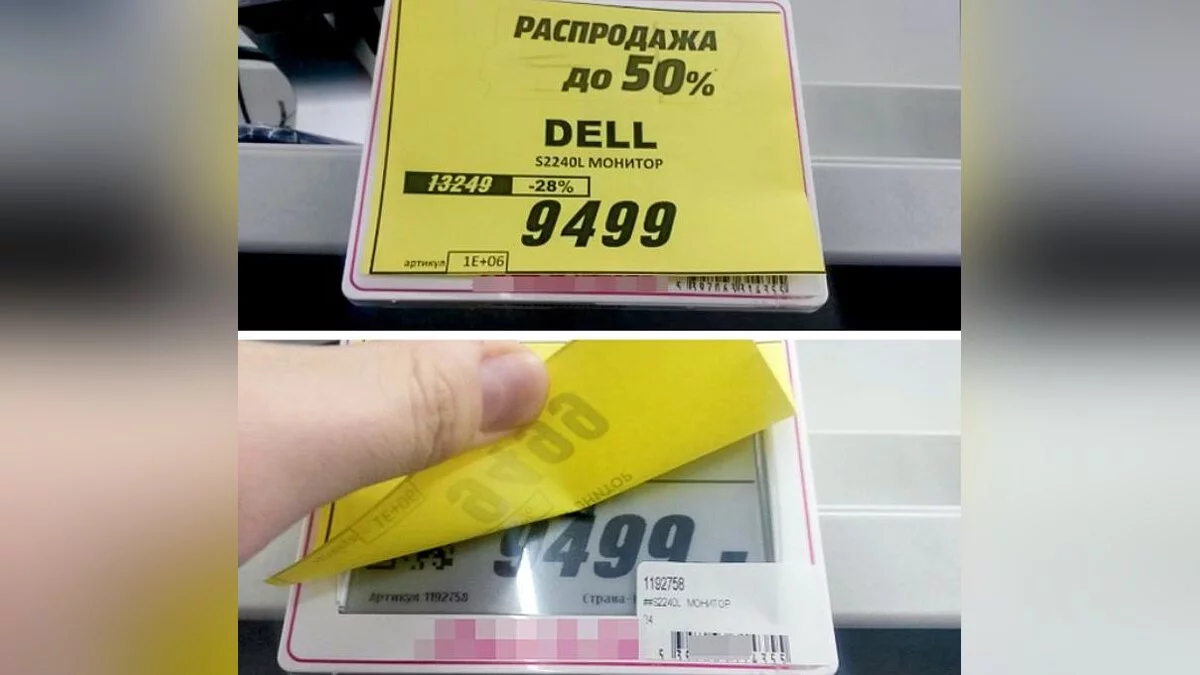 Мы живём в прогрессивное время, и совсем уж откровенные способы обмана вроде бы давно должны сойти на нет — однако реальность не так оптимистична. Задрать цену повыше, а затем сделать скидку — тактика проверенная временем. А порой продавцы даже на утруждаются поднятием цены и беззаботно клеят акционный ценник прямо на стандартный (цена на обоих, конечно же, одинаковая).