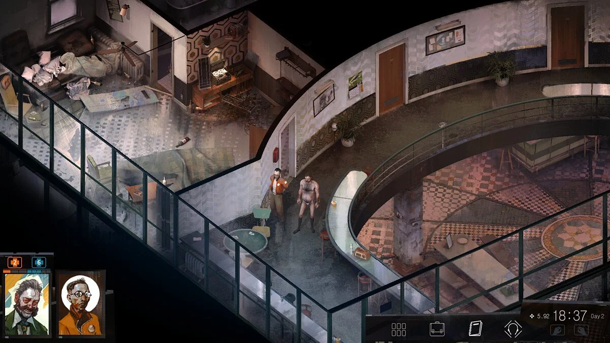 Сама история Disco Elysium была вдохновлена одной из кампаний ролевой игры, в которой Гарри был лишь одним из многих персонажей. С остальными вы можете пообщаться по рации — впрочем, не буду слишком много спойлерить. Но да, классическая детективная история о приятеле-полицейском казалась хорошим решением. Мы смогли заинтересовать людей определенными ходами — вы просыпаетесь с сильным похмельем, не помня прошлого, — но затем преподнесли множество неожиданностей. Кроме того, мы знали, что история работает, так как уже провели с персонажами много времени и действительно полюбили их.