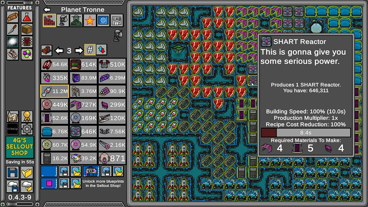 Каждую секунду игрок получает определённое количество ресурсов, необходимое для проведения дальнейших исследований, которые в свою очередь требуются для ускорения процесса производства.