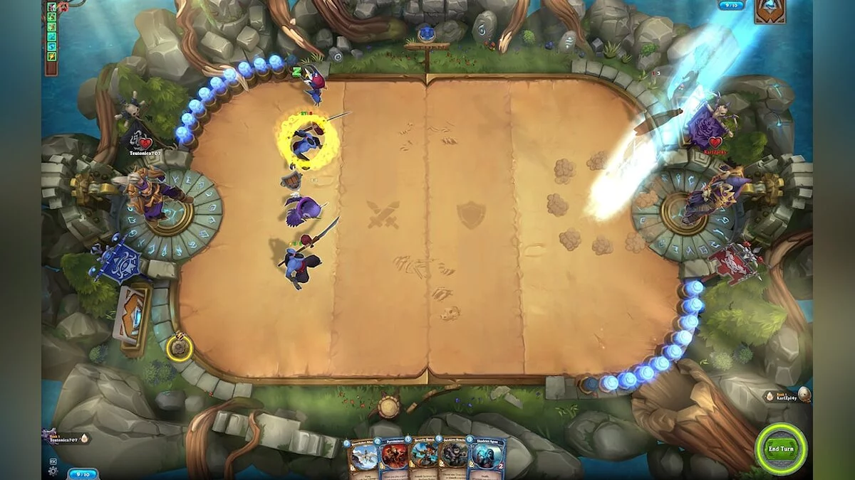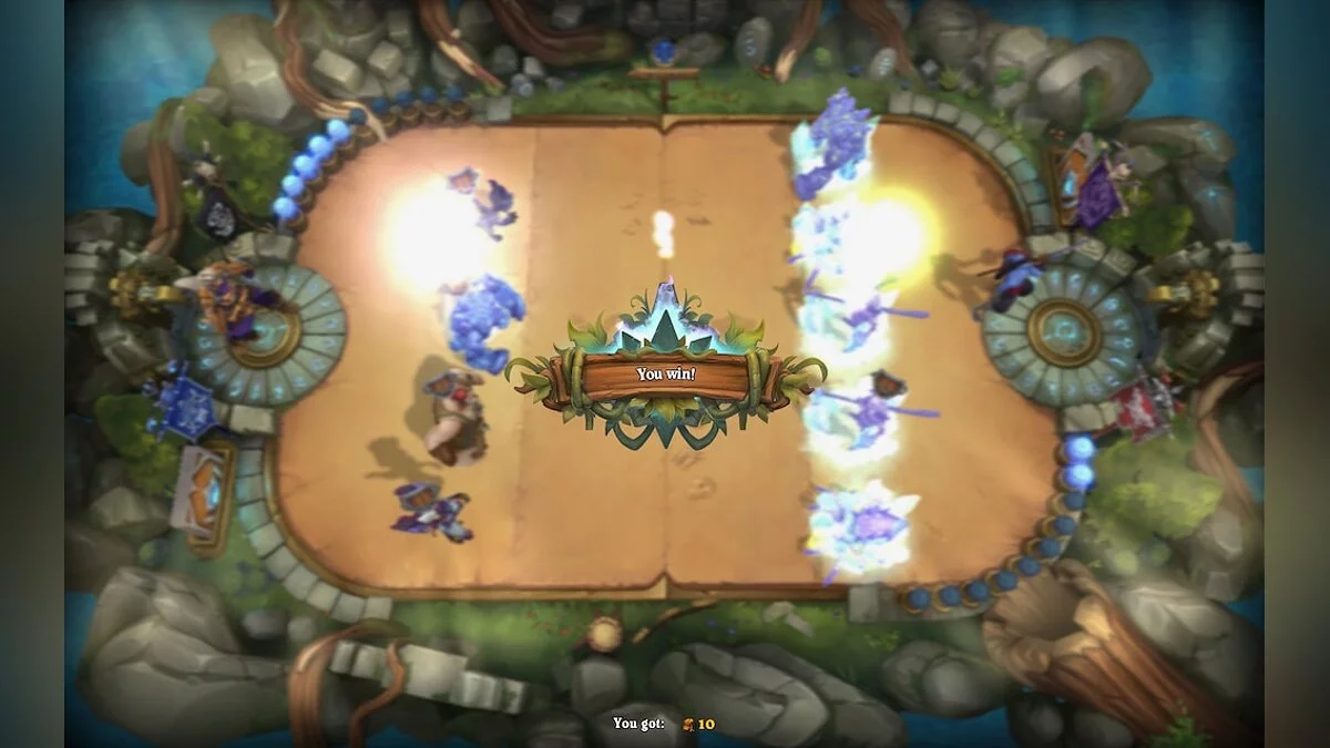 Сами бои намного проще и не требуют долгого и мучительного изучения тактики. Достаточно выбрать одну из шести доступных колод и броситься в товарищескую битву рубить противника. Легендарные карты открываются бесплатно за выполнение заданий, да и сборка колоды — дело плевое.