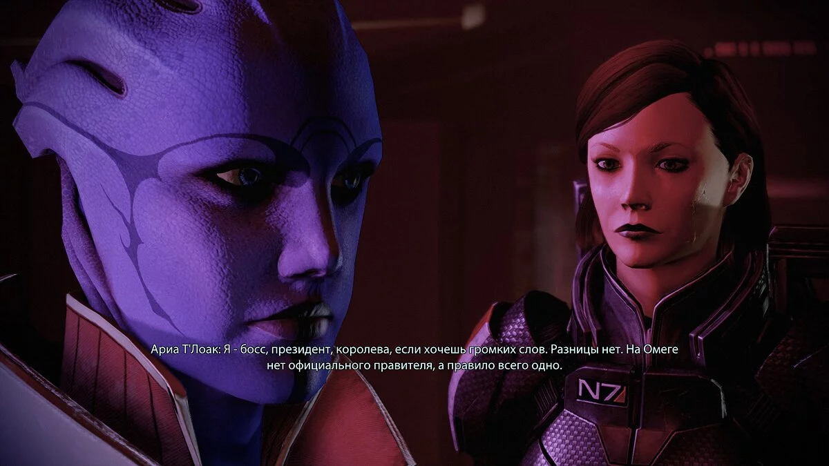 Что до сиквелов, то они недалеко ушли от ванильных версий. Посмотрите на скриншоты. Можно заметить, что качество текстур стало лучше, металлические поверхности (и не только они) в переиздании получились куда фактурнее. Например, теперь можно разглядеть пигменты и неровности на лице хозяйки космической станции Омеги, Арии Т'Лоа.