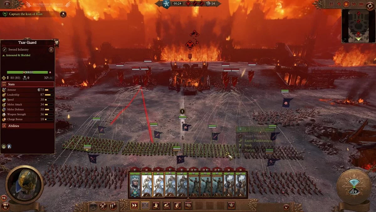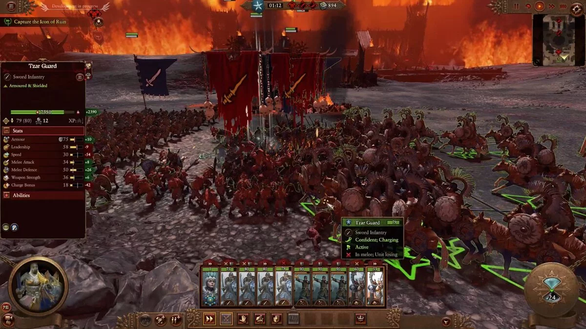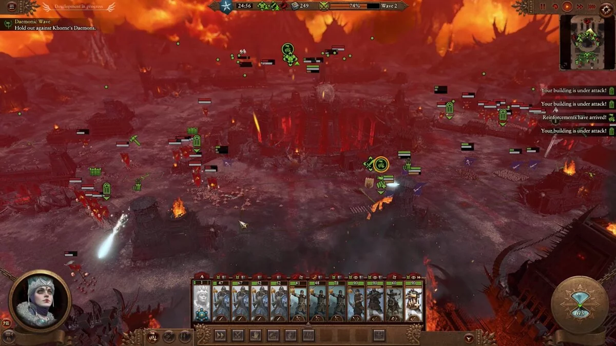 Стоит отметить, что я далеко не новичок в серии Total War и провёл десятки часов в каждой из полноценных частей, начиная с Shogun и заканчивая Three Kingdoms, но за две часовые попытки мне так и не удалось одержать победу: войска сминались ордой Кхорна и даже могучая Катарина не могла ничего ей противопоставить.