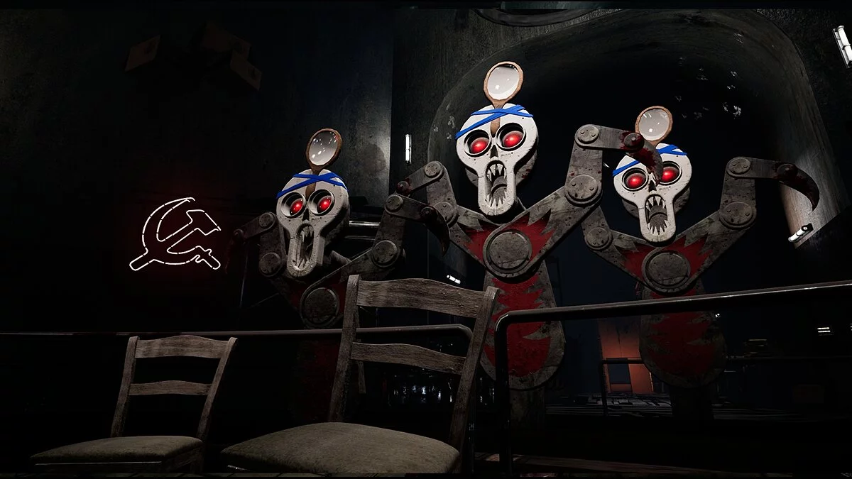 Локации Atomic Heart пропитаны тем самым советским сеттингом: где-то вдали возвышается Родина-мать, стены усеяны красными звёздами и гербами, а среди врагов — чокнутые матрёшки. Даже здоровье герой будет пополнять жадным глотком варёной сгущёнки.
