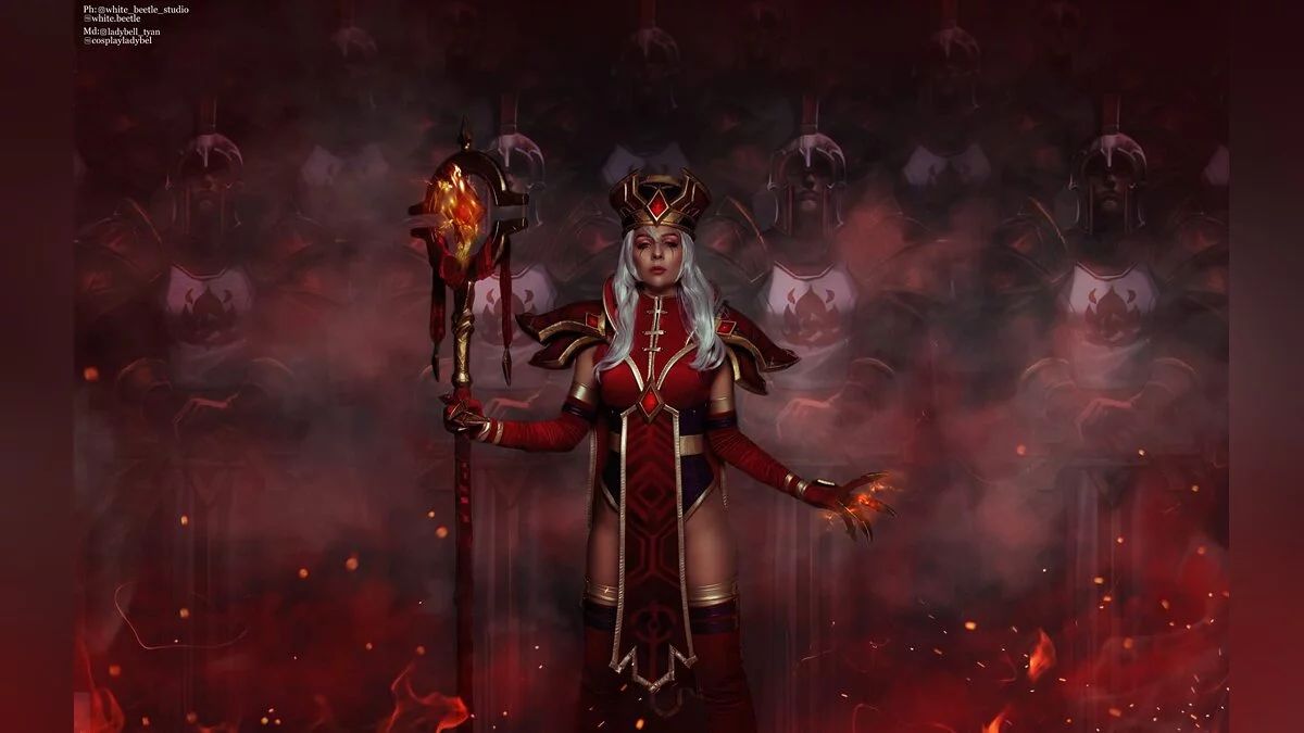 Салли — неоднозначный персонаж, ее можно любить за властность и стремление к победе над нежитью, а ненавидеть за то, какой фанатичкой она стала. Мне нравится верховный инквизитор из-за её истории в мире Варкрафта и то, как можно передать ее характер на фото. А ещё мне было интересно крафтить её броню.