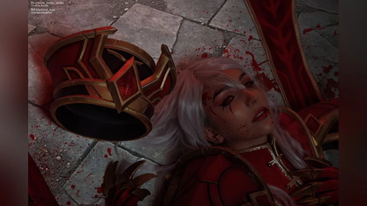 Ольга Кожевникова, также известная как леди Бубенчик, много раз возвращалась к образу верховного инквизитора Салли Вайтмейн. На этот раз девушка обыграла самый трагичный момент в судьбе своей героини — смерть от рук главного героя игры.