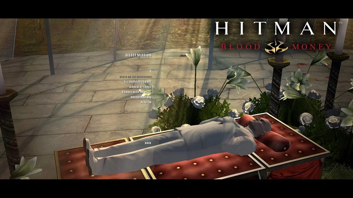 Над основным сюжетом Blood Money тоже неплохо поработали, ведь он умудрялся удивлять, когда игра ещё даже не началась: стартовое меню демонстрировало… похороны Агента 47, предвещая незавидную участь клона, — интригует, не правда ли?