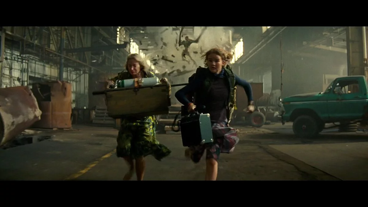 После рассказа о первом дне, история возвращает зрителя в настоящее, где Эвелин с двумя подростками и новорождённым ищут место для жизни. В конце первого фильма персонажи нашли слабое место монстров, а Эмили Блант взяла винтовку с таким лицом, будто собирается как настоящая Чёрная вдова в одиночку спасти человечество. Но сиквел быстро сбивает с героев спесь: люди — всё ещё добыча, а не охотники, и шансов в драке у них мало.
