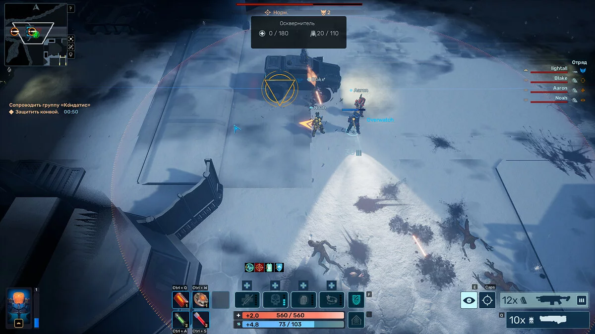 По началу незнакомые с серией геймеры подумают, что Ironward вдохновлялась исключительно Alien Shooter: боевые товарищи несутся по локации с пушками наперевес и нещадно отстреливают мутантов. Ещё проще игру делает режим overwatch: когда он включен, во врагов можно даже не целиться — герой сам уничтожит ближайшую цель. Вот только первое впечатление обманчиво: бездумная пальба неизбежно обернётся гибелью всей группы — для выживания нужно включать голову.