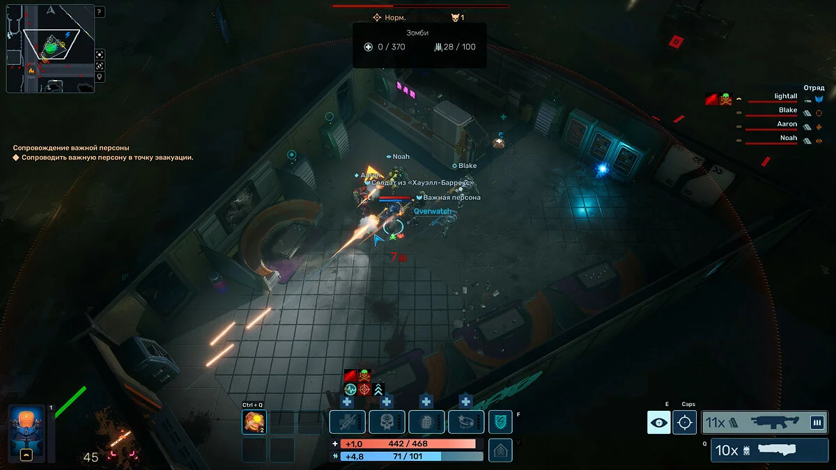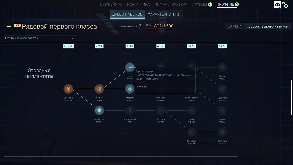 Каждого солдата можно прокачивать, улучшая броню, здоровье радиус видимости и многое другое. Есть пассивки и для всей команды: группу можно научить наносить на пять процентов урона больше, лучше держать удар и много чему ещё.
