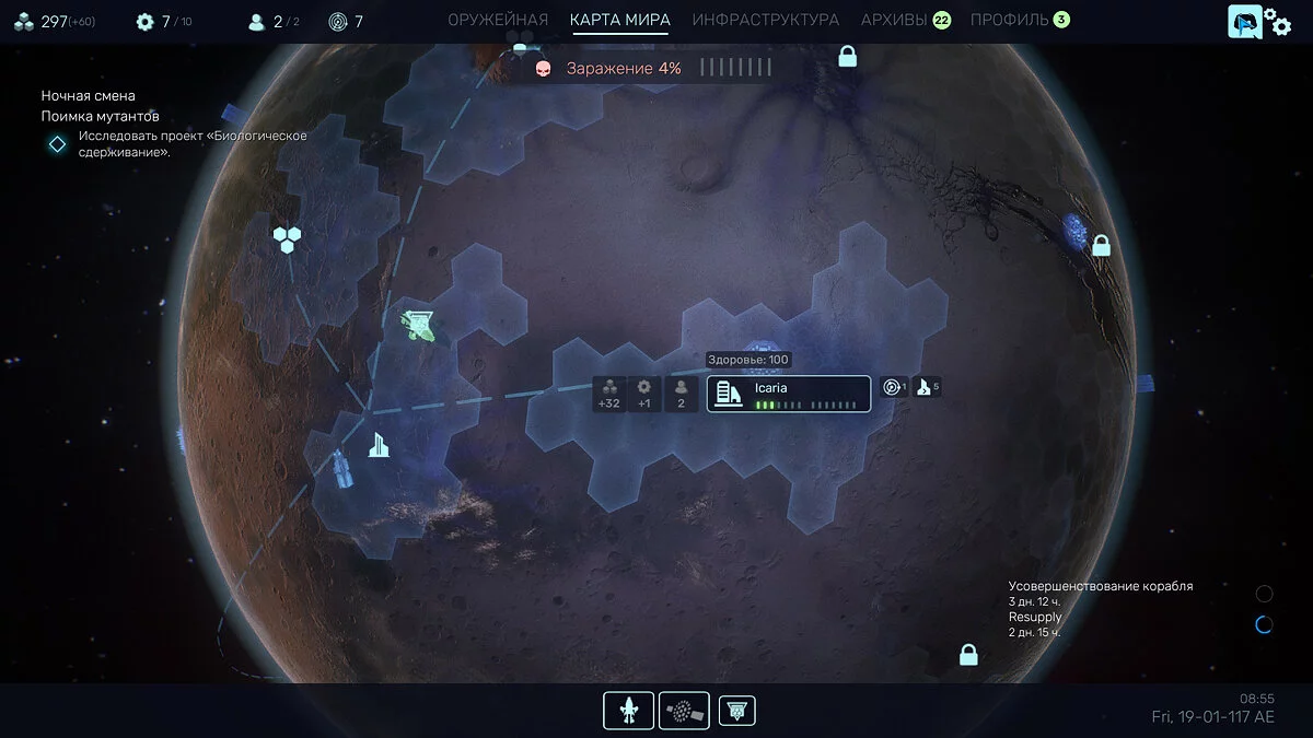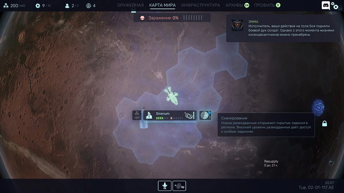 Сильнее всего дух XCOM чувствуется, когда игра отправляет геймера на глобальную карту. Место действия — раздробленный на регионы Марс, перемещаться по которому вы будете на корабле. Можно разведывать территорию, добывать припасы, устанавливать контакт с соседними регионами — периодически стратегическая часть будет прерываться внезапными полевыми заданиями. Где-то неподалёку в беду попал важный учёный — полетите за ним или бросите в беде?