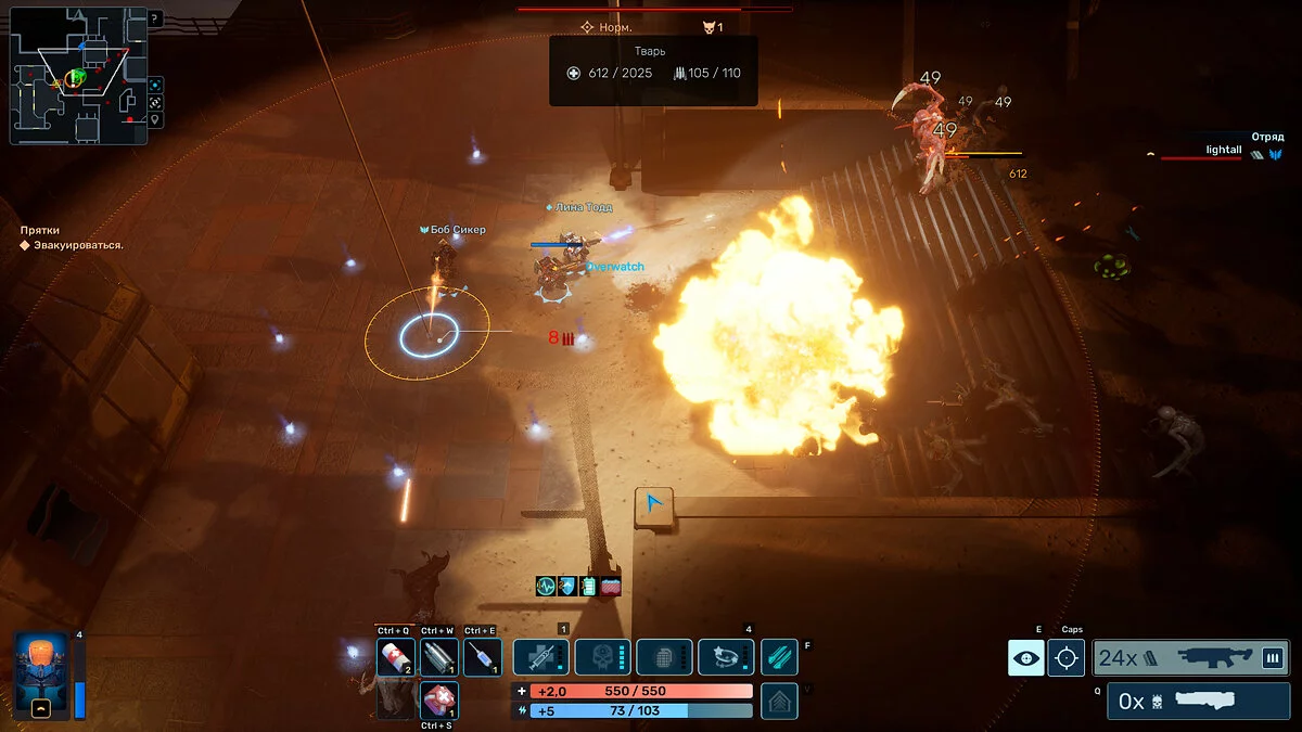 Проанализировав, что было сделано не так, понимаешь, что в инвентаре не зря лежали мины и крио-гранаты, а где-то в помещении неподалёку можно было подобрать турель. О режиме overwatch в жаркие моменты забываешь: он отнимает энергию, которую можно потратить на перк вроде усиления брони, игнорирует бочки, взорвав которые можно уничтожить десяток тварей, и работает только для основного оружия.