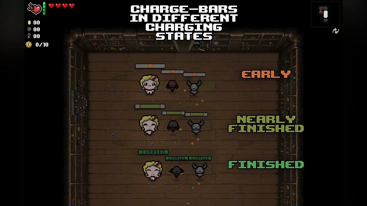 Мод добавляет полосу заряда для всех пассивных предметов, которые необходимо зарядить перед использованием. Полезно, когда надо рассчитать время.