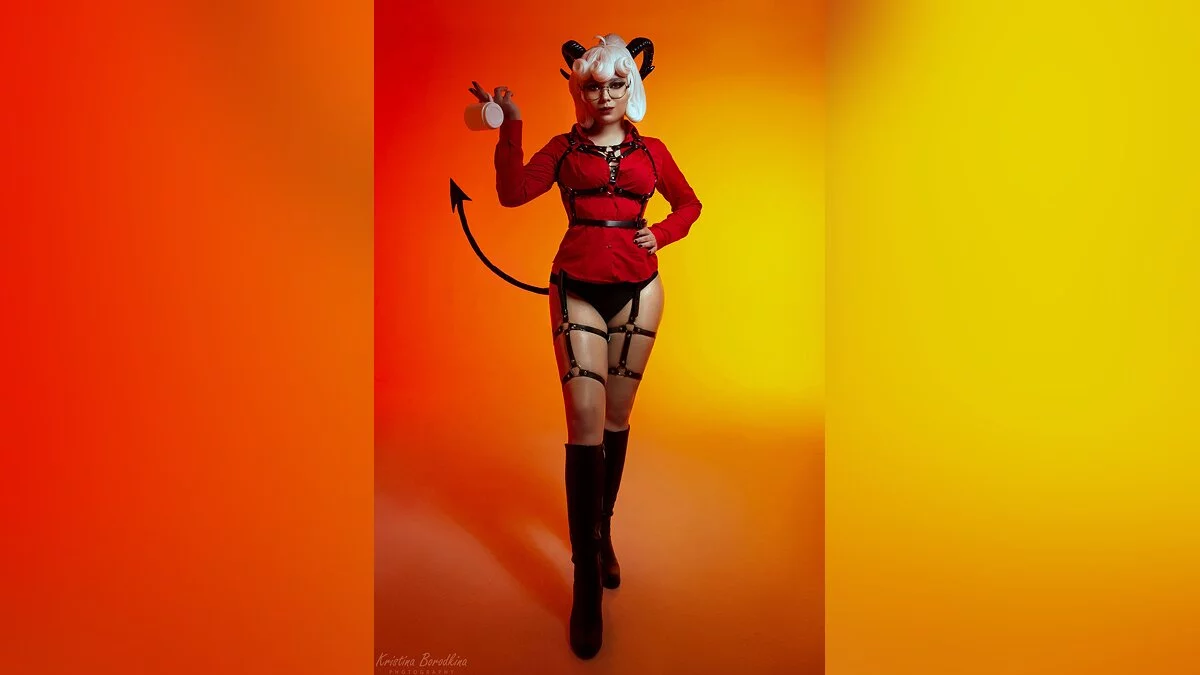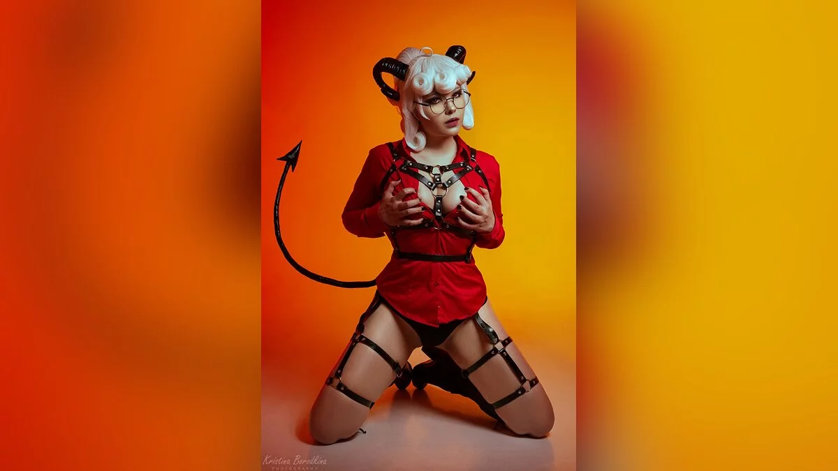 Helltaker — головоломка, по ходу прохождения которой мы собираем гарем из очаровательных демониц. Популярность игры сошла на нет несколько месяцев назад, однако в косплее работы по мотивам выходят до сих пор. Агния Северина сделала косплей на Пандемонику, строгого, но симпатичного суккуба.