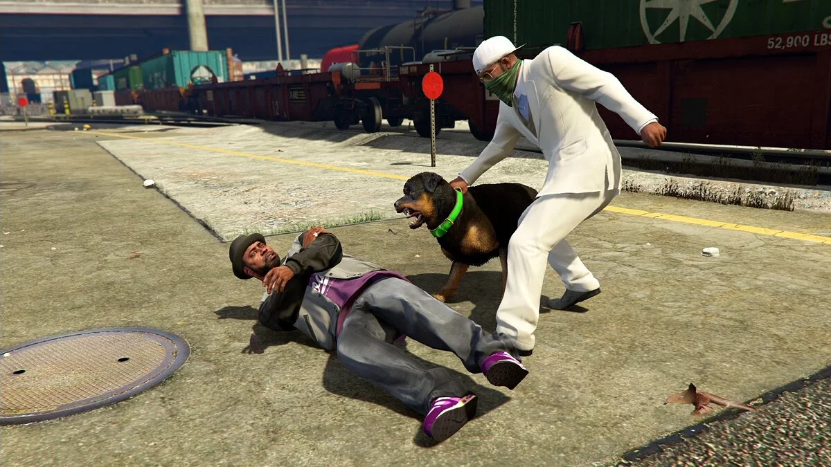 Изначально Чоп, имя которого переводится как «кусь», принадлежит Ламару, но после неудачной покупки наркотиков, которая обернулась локальным Апокалипсисом, хозяин отдаёт пса одному из героев GTA 5 — Франклину. Теперь афроамериканец может играть с питомцем, выводить его на прогулку, бросать ему мяч и всячески развлекать. Если вы хотите пройти игру на 100 процентов, придётся погулять с Чопом хотя бы один раз.