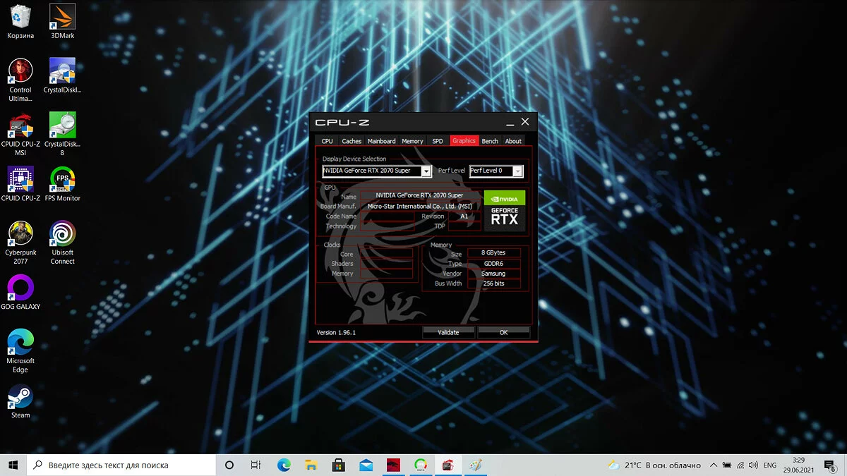 - Видеокарта: Intel UHD Graphics 630, NVIDIA GeForce RTX 2070 Super (1140 — 1950 / 14000 МГц, 8 ГБ GDDR6)
