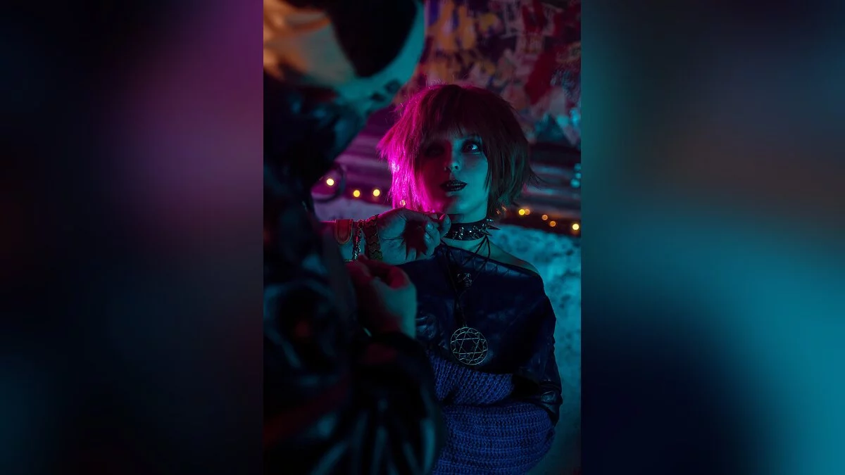 Изначально мы хотели сделать групповое выступление на фестивале Epic Con в Москве. Я написал сценарий, подобрал саунд-дизайн нашей сценки. И заодно мы решили провести фотосет, ведь всё равно собираемся в Москве. В результате фестиваль отменили, но съёмка все же состоялась. Отмечу, что звонок Aku (фотографа) с предложением поснимать нас оказался большим сюрпризом. Он сейчас практически не берёт съёмки, но ему захотелось поработать со вселенной Cyberpunk 2077. Результатом я чрезвычайно доволен. В будущем буду проводить ещё много съёмок по «Киберпанку», в том числе сольный фотосет в образе Джонни и другие групповые проекты. Помимо этого, хочется сделать масштабное видео.