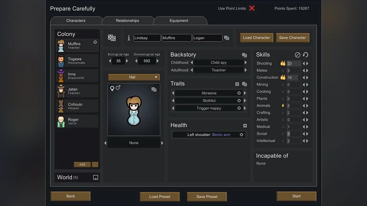 EdB Prepare Carefully — создание новых персонажей в Rimworld и ручная настройка параметров колонистов